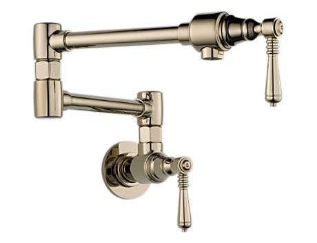 Brizo 62810LF-PN Brilliance Polished Nickel Traditional Double Handle Wall Mount Pot Filler with Metal Lever Handles 62810LF?Timeless form meets contemporary function Flow Rate: 4 gpm, 15.2 L/min 23-1/4 in. long ADA compliant when installed properly Cold water only Wall mount with dual shut-offs Compliant with California and Vermont low-lead legislation Brilliance Polished Nickel finish Brilliance finish which resists abrasions and discolorations better than traditional brass or even chrome