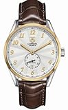 | ✚✚✚ Tag Heuer Carrera Calibre Heritage Silver Dial Automatic Mens Watch WAS2150.FC6181 Stainless steel case with a brown leather strap. Fixed 18kt yellow gold bezel. Silver dial with gold-tone hands and Arabic numeral hour markers. Minute markers around the outer rim. Dial Type: Analog. Date display at the 6 o'clock position. Seconds sub-dial above the 6 o'clock [position. Automatic movement. Scratch resistant sapphire crystal. Pull / push crown. Skeleton case back. Case diameter: 39 mm. Case thickness: 12.60 mm. Round case shape. Push button fold over clasp. Water resistant at 100 meters / 330 feet. Functions: date, hour, minute, second. Luxury watch style. Watch label: Swiss Made. Tag Heuer Carrera Calibre Heritage Silver Dial Automatic Mens Watch WAS2150.FC6181.