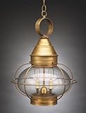 | ✚✚✚ Caged Onion Hanging Antique Brass 2 Candelabra Sockets Frosted Glass Nautical Outdoor Hanging Lantern in Antique Brass with Frosted glass from the Onion Collection by Northeast Lantern. Dimensions: 20.00 H 14.50 W - Solid Brass - 2572-AB-LT2-FST