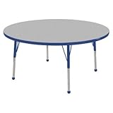 | ✚✚✚ 48" Round Adjustable Activity Table in Gray [Set of 4] Edge Banding: Yellow, Leg Color: Yellow, Leg Style: Standard Leg Standard Nylon Glides ELR-14115-GYE-SS Edge Banding: Yellow, Leg Color: Yellow, Leg Style: Standard Leg Standard Nylon Glides Features: -Laminate table tops are 1.125 thick and are laminated on both sides.-The table substructure is made from medium-density particleboard (47 lb/ft ) that is at least 90pct recycled (minimum 4pct post-consumer, balance pre-consumer)..-EPP certified, CARB compliant and may contribute to US Green Building Council's LEED Credits.-18 gauge galvanized steel stability bars, with poly caps, installed on underside of all 66 - 72 length tables.-Superior shipping materials meet or exceed ISTA regulations.-Powder-paint coated upper leg.-Chrome-plated adjustable lower leg insert.-Legs are adjustable in 1 increments.-Threaded adjustment holes in chrome lower leg keeps legs securely in place.-Easy mount leg installation with pre-installed brackets and pre- drilled screw holes for easy alignment.-Toddler Leg size (15'' - 23'').-Standard Leg size (19'' - 30'').-Chunky Leg size (15'' - 24''). Options: -Color coordinated polypropylene ball glides and nylon swivel glides available. Color/Finish: -Color-banding grips into the tabletop edges.-Color banding is made from PET and contains no phthalates.