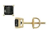 14K Yellow Gold : Princess Cut Black Diamond Stud Earrings 2.00 CT. TW. Screw Back