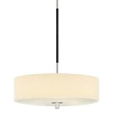 | ✚✚✚ Sparte Three Light Pendant in Satin Nickel 3994.55 Features: -Pendant.-Designed by Robert Sonneman.-Off-white crystal pleat shade.-Modernist theme.-Dimmer switch. Color/Finish: -Satin nickel with black finish. Specifications: -120 Volts.-Accommodates (3) 60W A19 medium base bulbs (not included). Dimensions: -Canopy dimensions: 6'' W x 6'' D.-Stem dimensions: 12'' H x 6'' W.-Shade dimensions: 6'' H x 22'' W x 22'' D.-Overall dimensions: 12.5'' H x 22'' W x 22'' D. Collection: -Sparte collection.