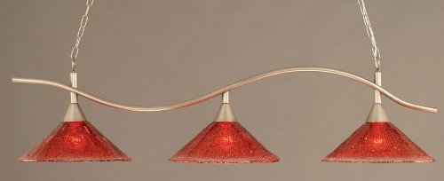 Toltec Pool Table Light Brushed Nickel Swoop Bar 16" Raspberry Crystal